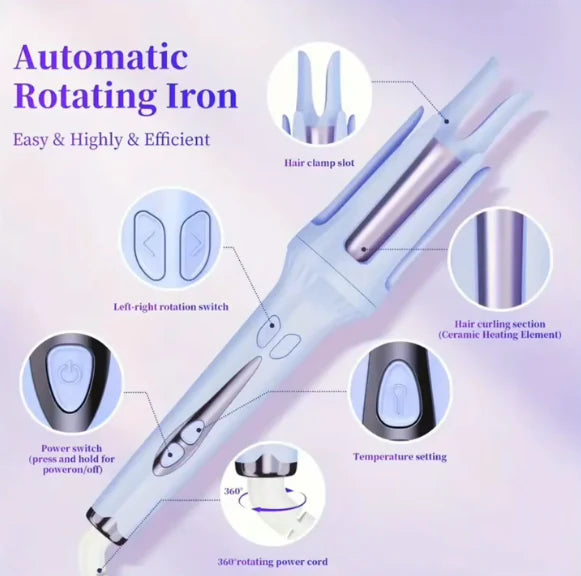 Effortless Styling – The 360° rotating barrel curls your hair with just one button.