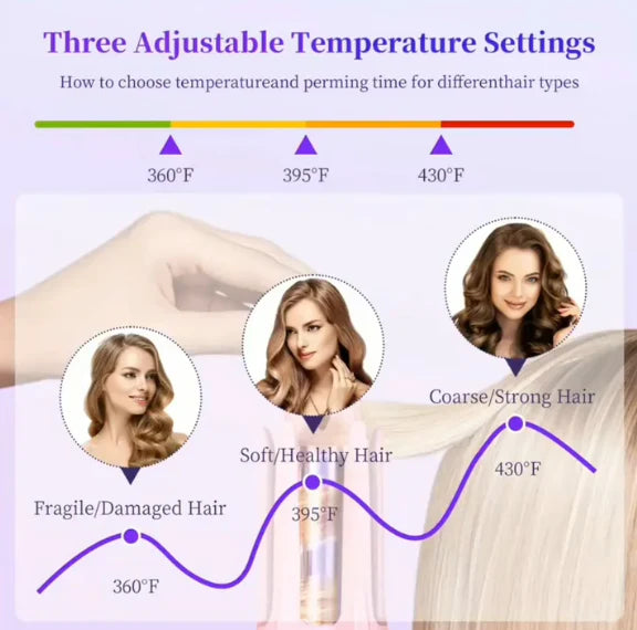 Adjustable Heat & Timer Settings: Choose from multiple heat levels (up to 400°F / 200°C) and timer settings to customize your curls to suit your hair type and desired look.