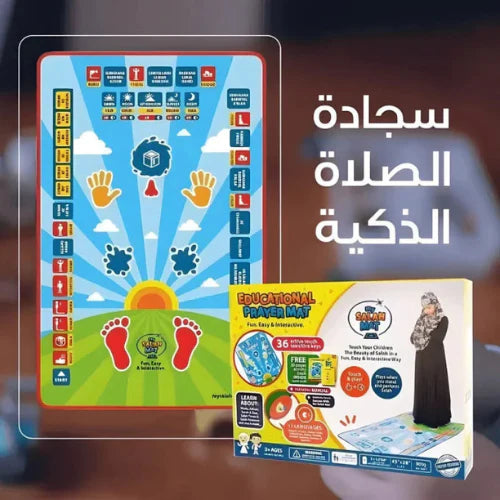 سجادة تعليم الصلاة الالكترونية للأطفال تحتوى على 36 زرار يعمل باللمس وتحتوي على 7 لغات